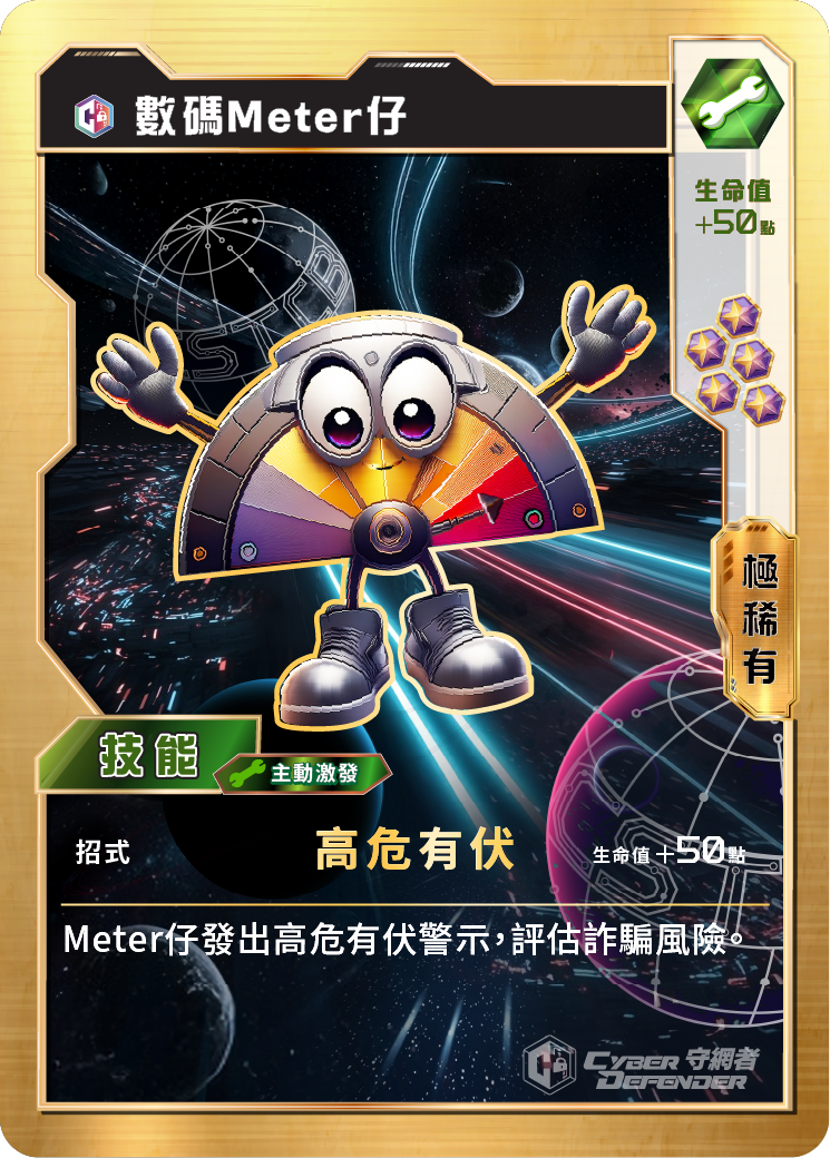 「守网联盟游戏卡」每一张卡都包含各种网络安全信息,并对应真实案件与犯案手法。玩家透过组合不同的游戏卡,进行部署及攻防战,并在游戏中灵活运用,借助其互动性同代入感,深刻体会网络威胁并学识如何抵御,达致寓教于乐。其中,「特别超级稀有」及「极稀有」游戏卡更印有参与部门及机构的吉祥物,极具收藏价值。我们希望市民在游戏的同时,亦珍藏这些游戏卡以及相关的资讯,让数码素养深植心中,在遇到网络威胁时能发挥警惕作用。
